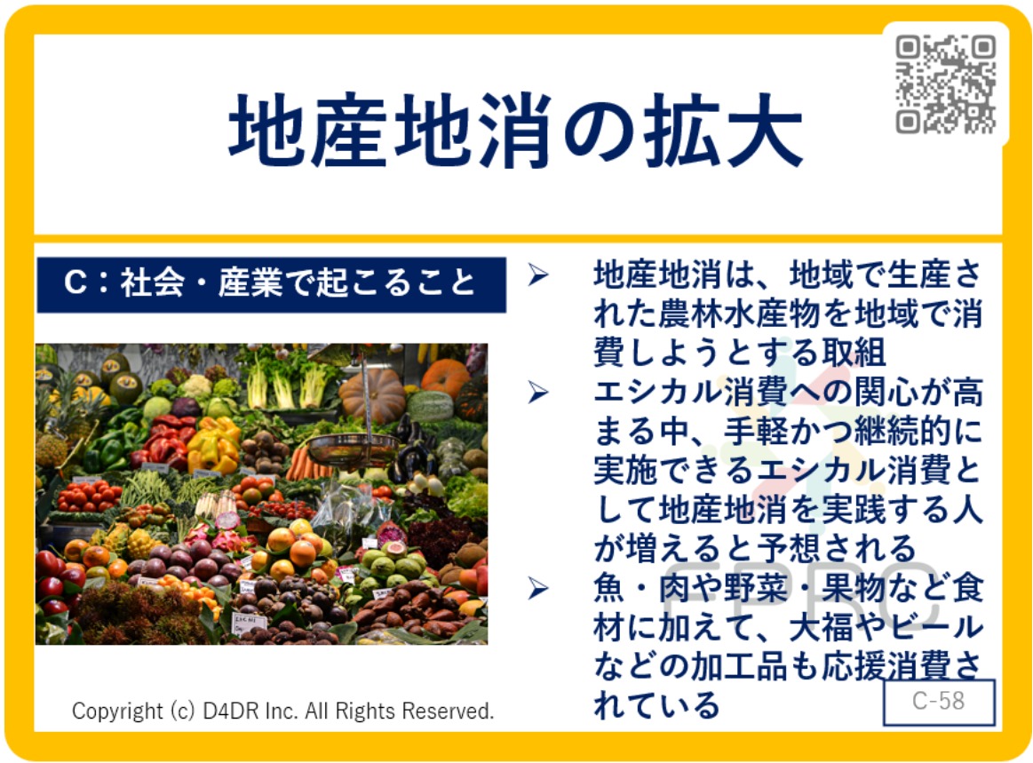 サステナビリティに関して、生活者の間では生産プロセスやフィロソフィーをしっかり公開している企業から買おうといった応援消費、共感消費のような分野が伸びていくと思っています。